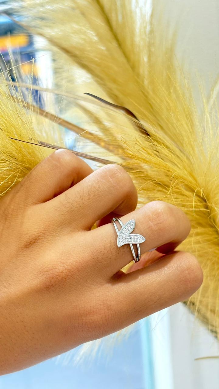 anel prata fio duplo coração cravejado