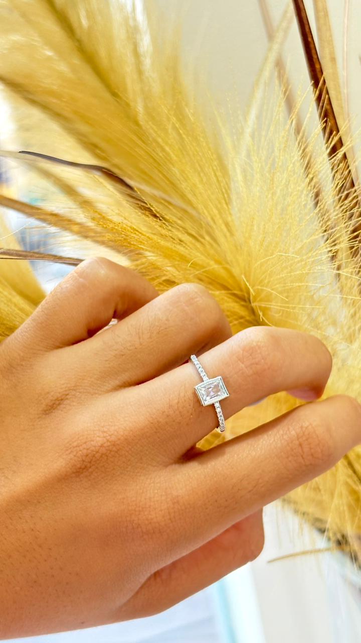anel solitário prata cravejado