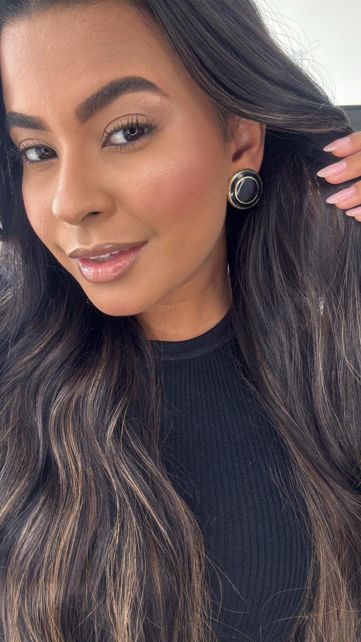 brinco botão preto com dourado