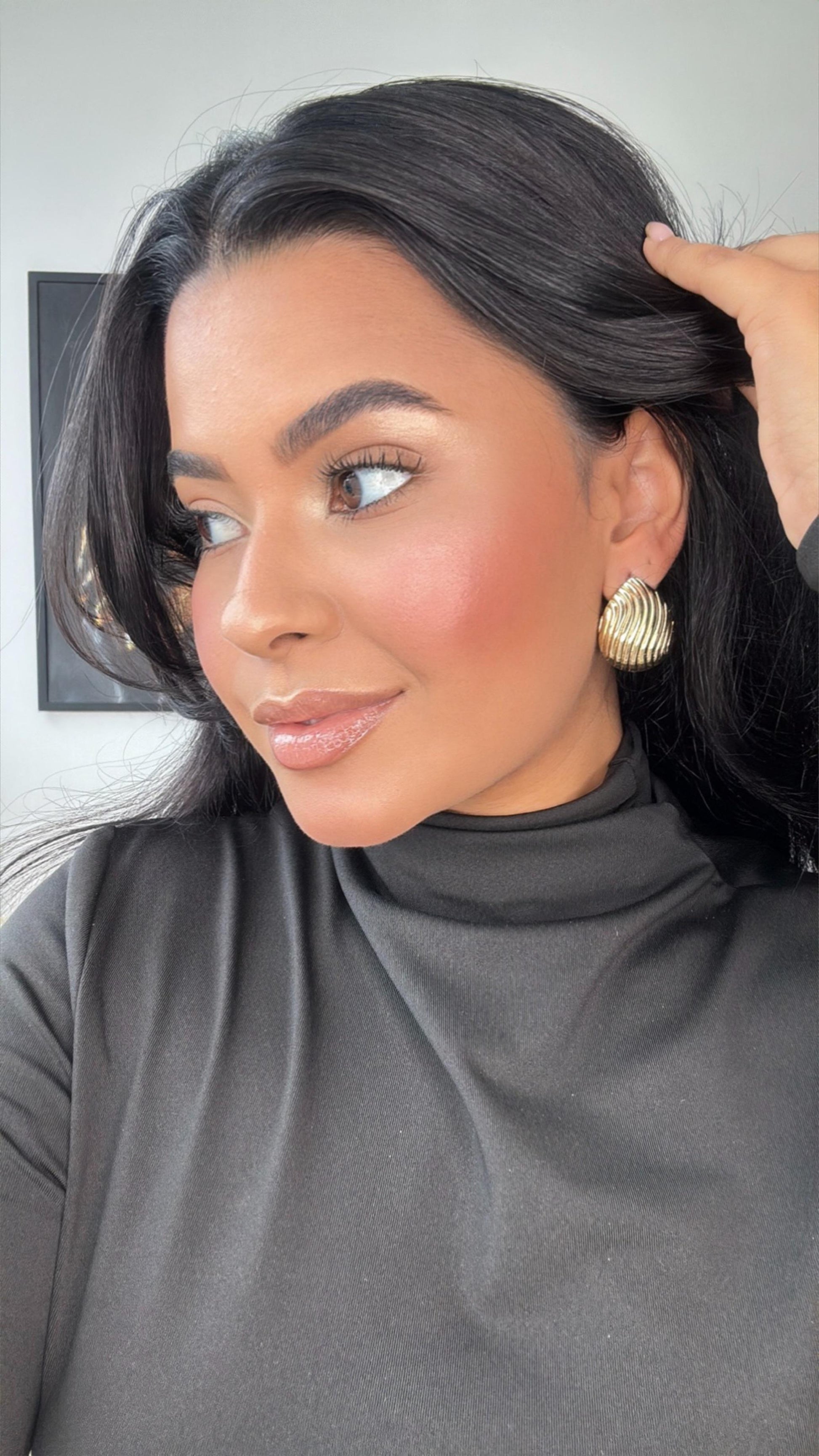 brinco concha com roscas em forma de gota dourada em aço inoxidável