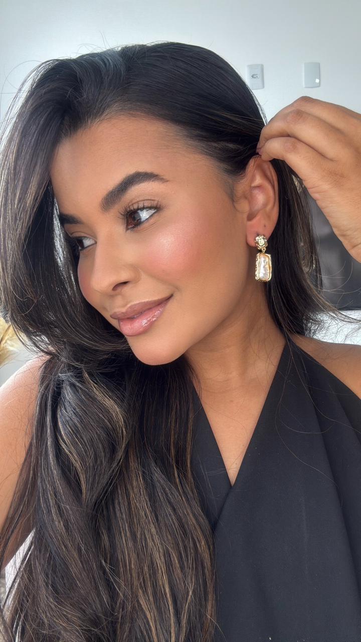 brinco dourado com detalhe em madre pérola revestido com dourado rajado
