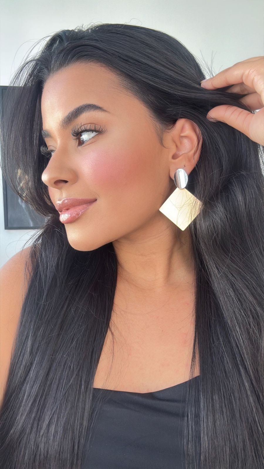 brinco geométrico triangular com mix de dourado e prata