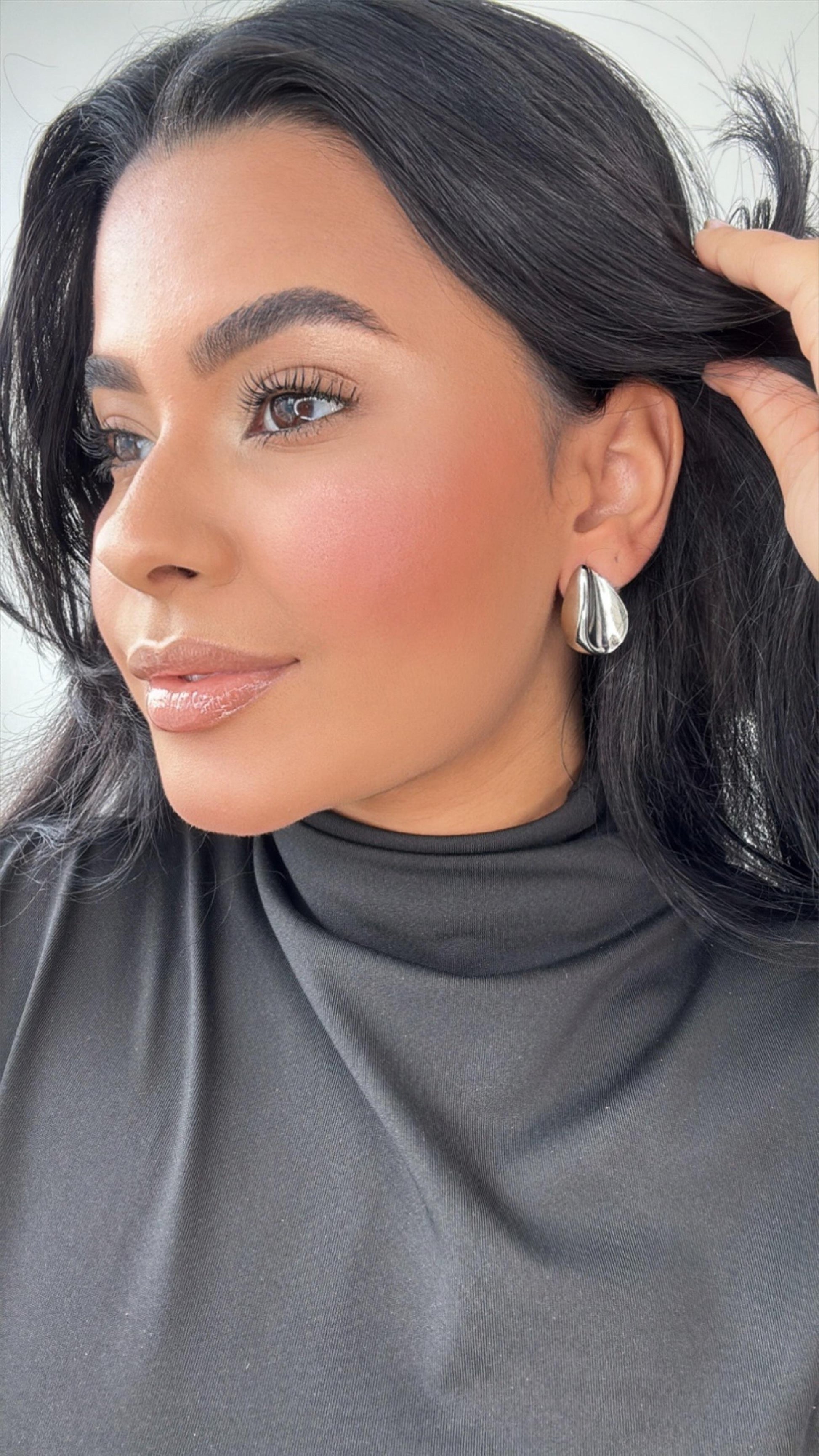 brinco gota ondulação prata em aço inoxidável