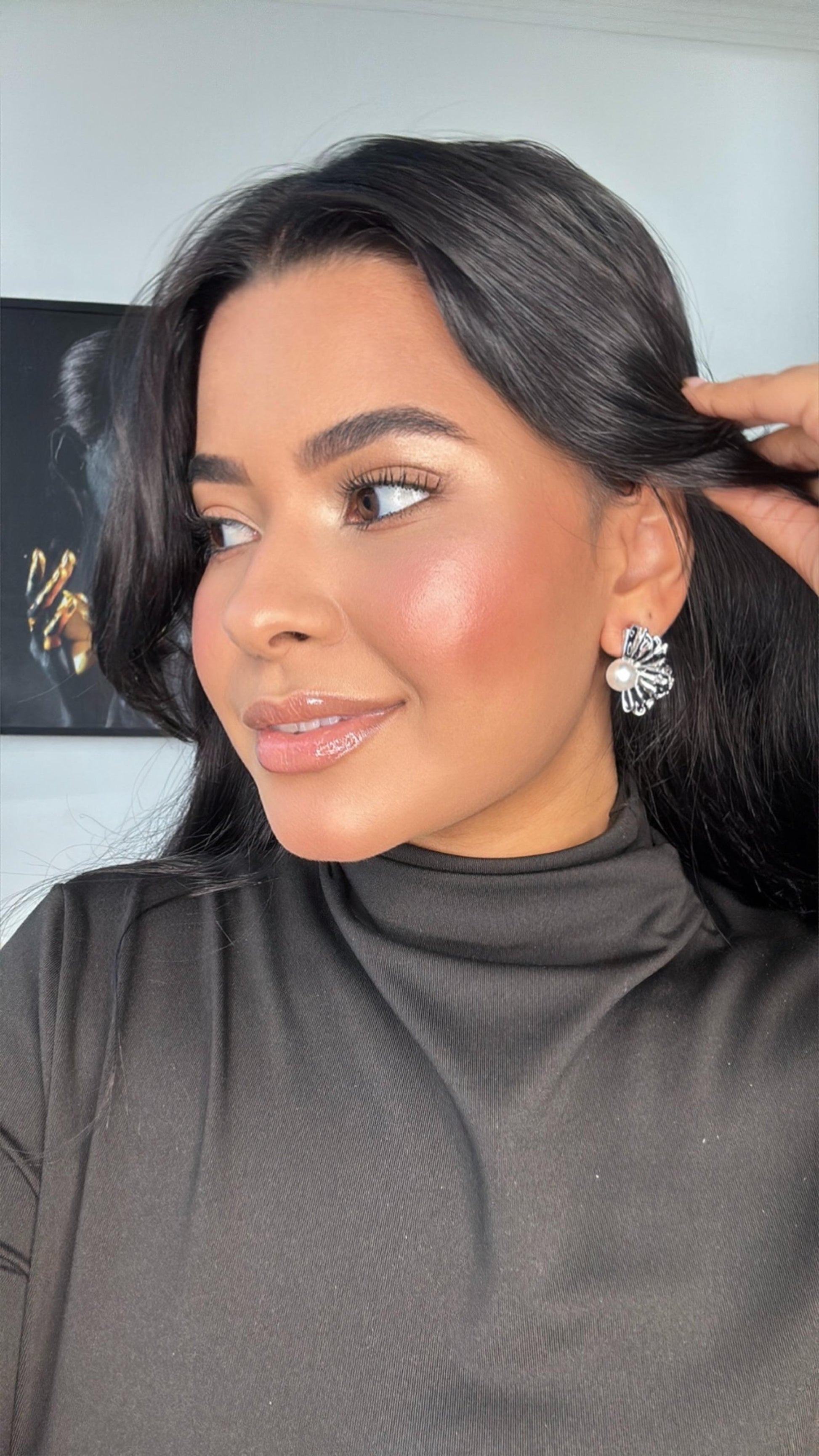 brinco metade da flor preto com pérola