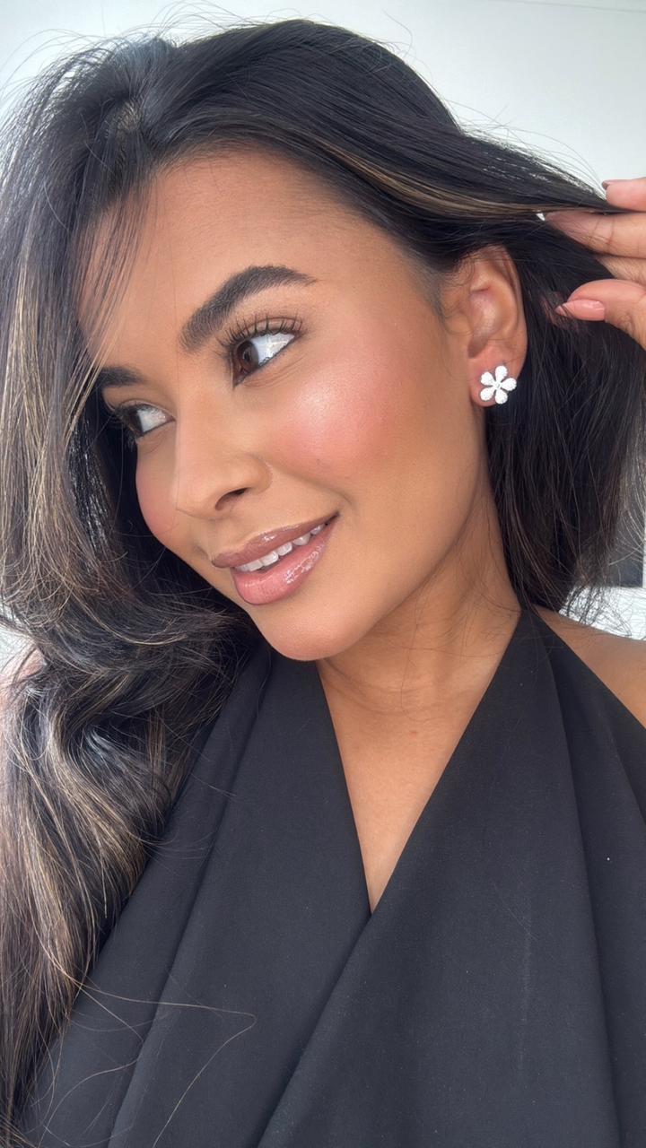 brinco prata de flor cravejado