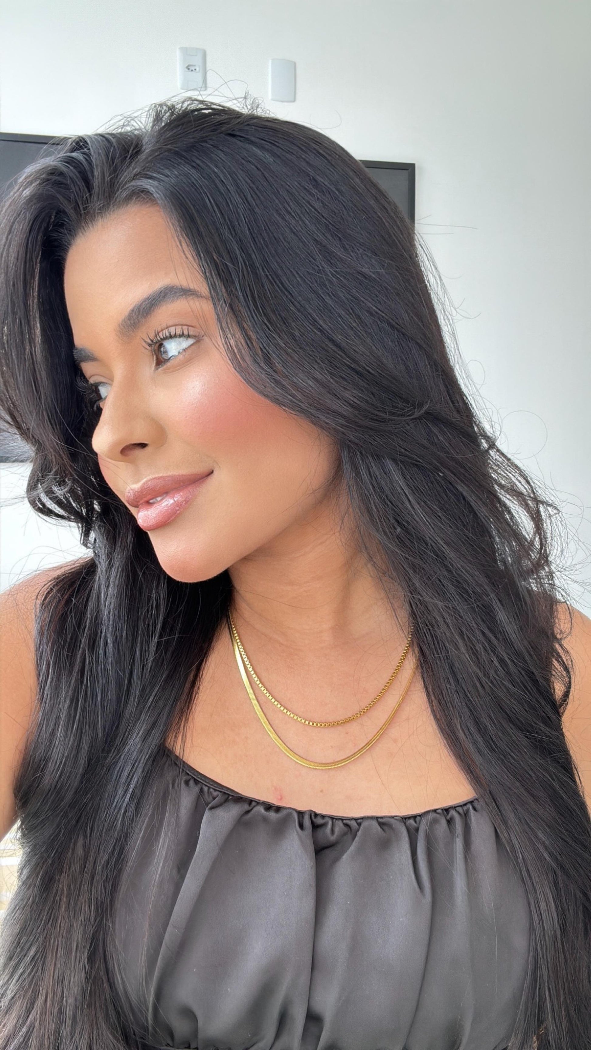 colar duplo dourado de aço inoxidável no modelo corrente tradicional e fita