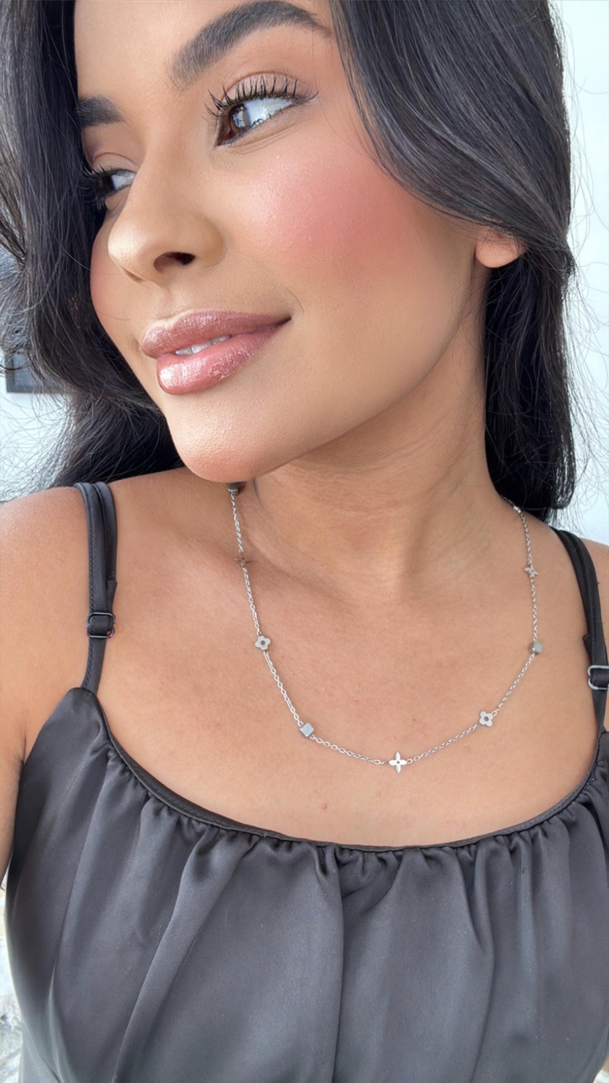 colar minimalista inspiração com detalhes pequenos prata em aço inoxidável