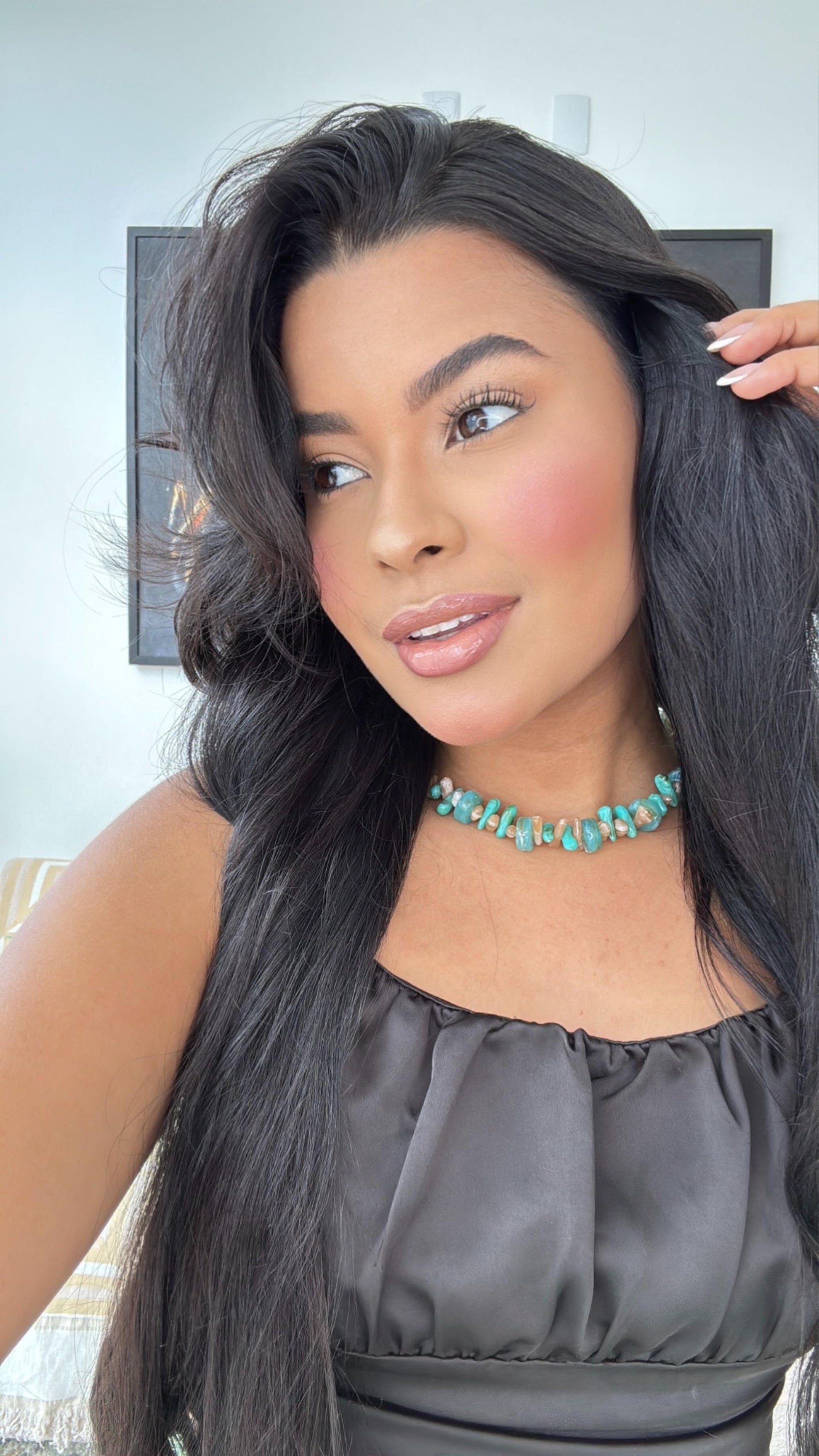 colar pedraria marrom claro com azul celeste claro verão 2025