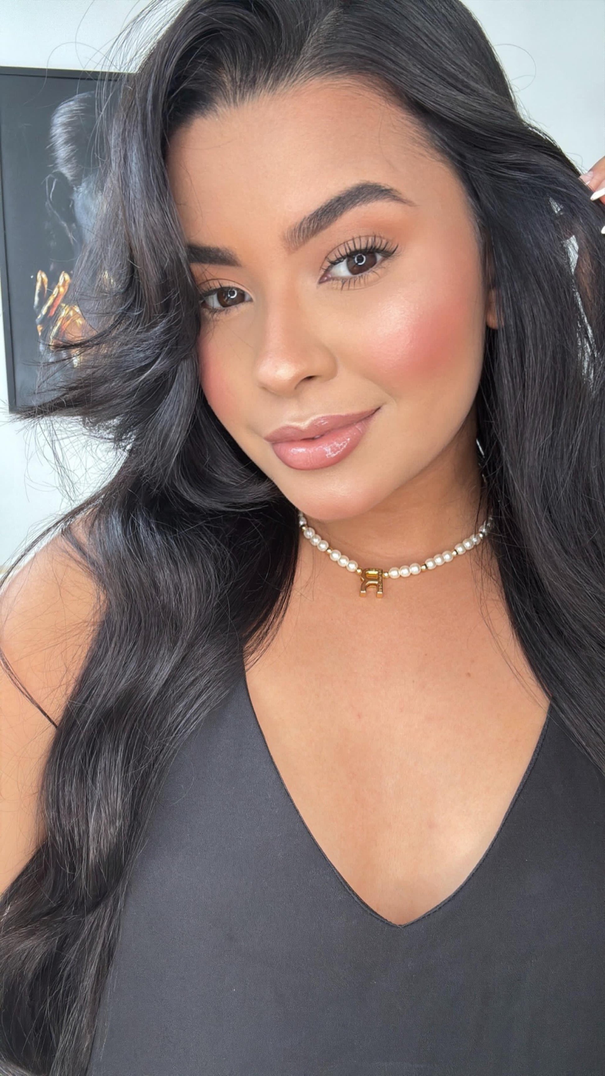 colar pérola minimalista letra R