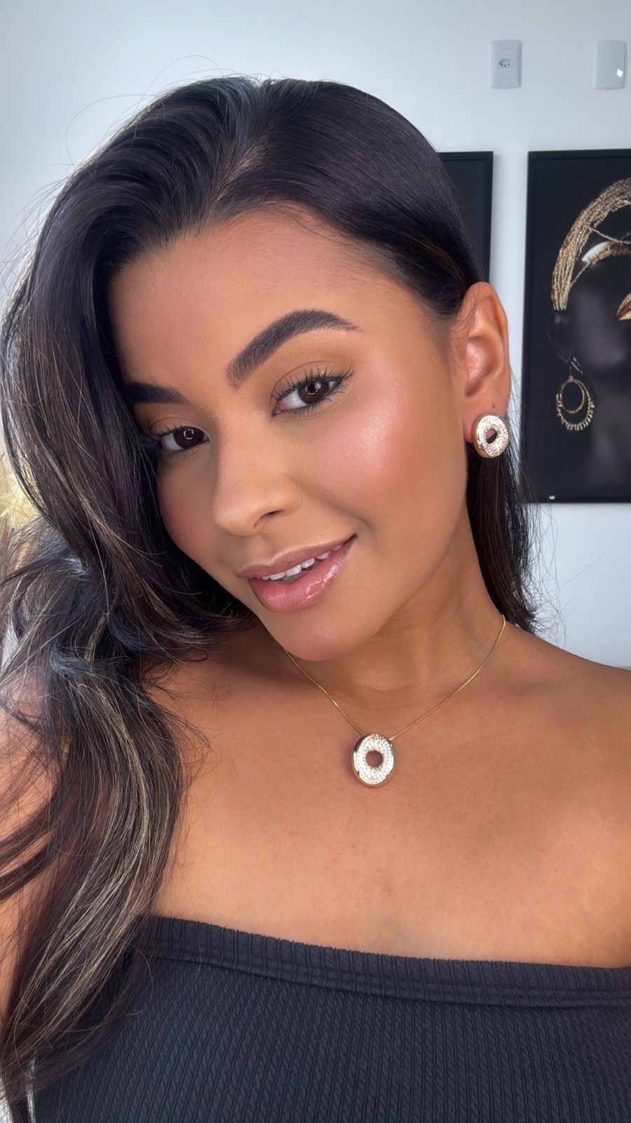 conjunto colar e brinco com pingente orgânico dourado com detalhe em strass