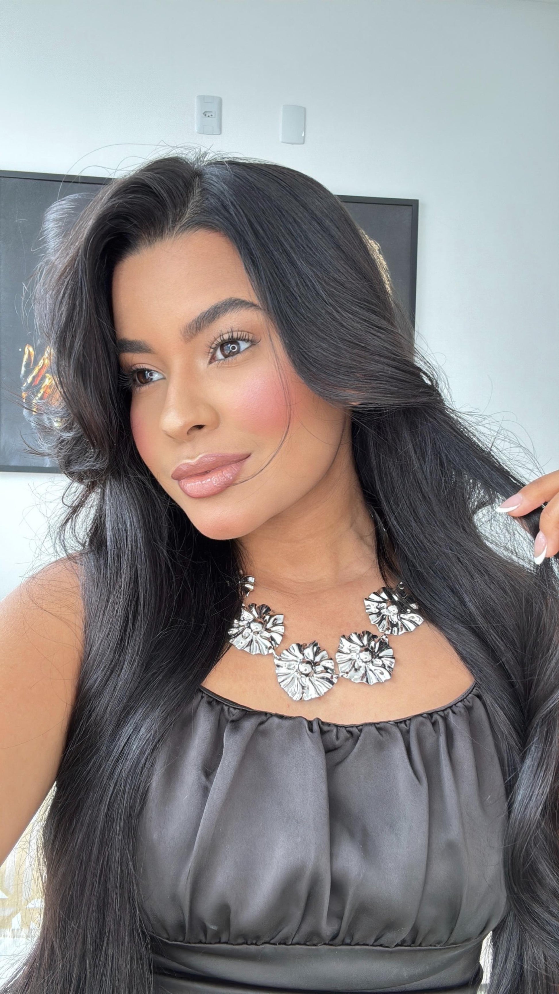 max colar prata em flores verão 2025