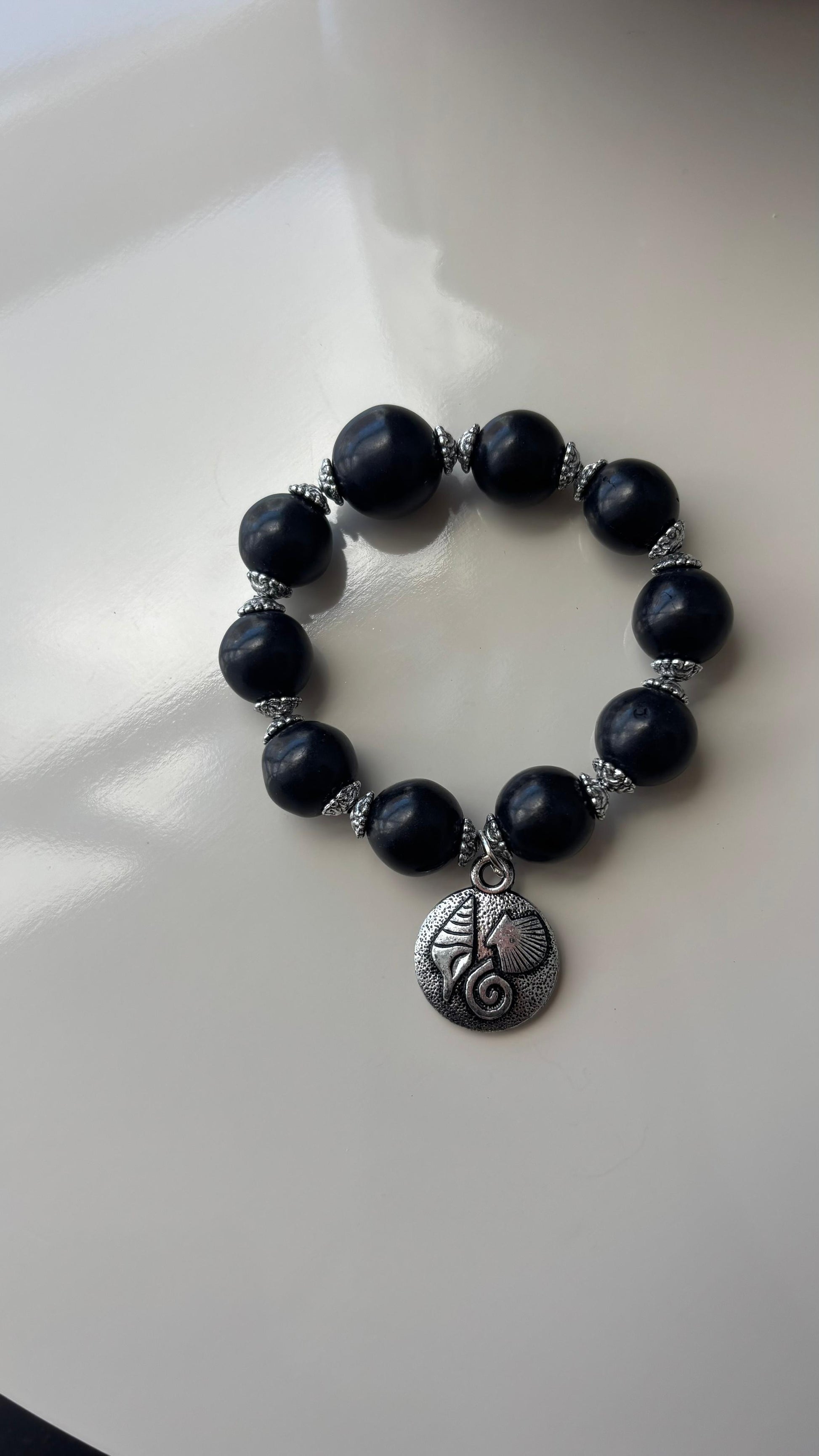 pulseira estilo boho preta com prata envelhecida